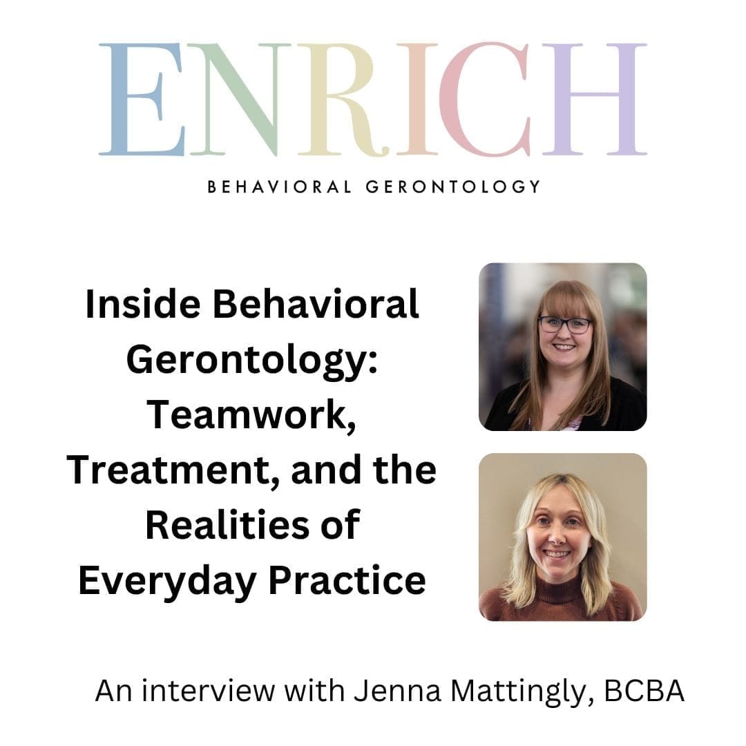 Explore the day to day role of behavioral gerontologist Jenna Mattingly as we discuss real life cases, working in inter disciplinary teams, balancing pharmacological and behavioral approaches and the challenges of working in a large facility for older adults.